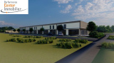 Projet de PROMOTION de 1200m² comprenant plusieurs cellules commerciales et une station de lavage à l'arrière du projet.